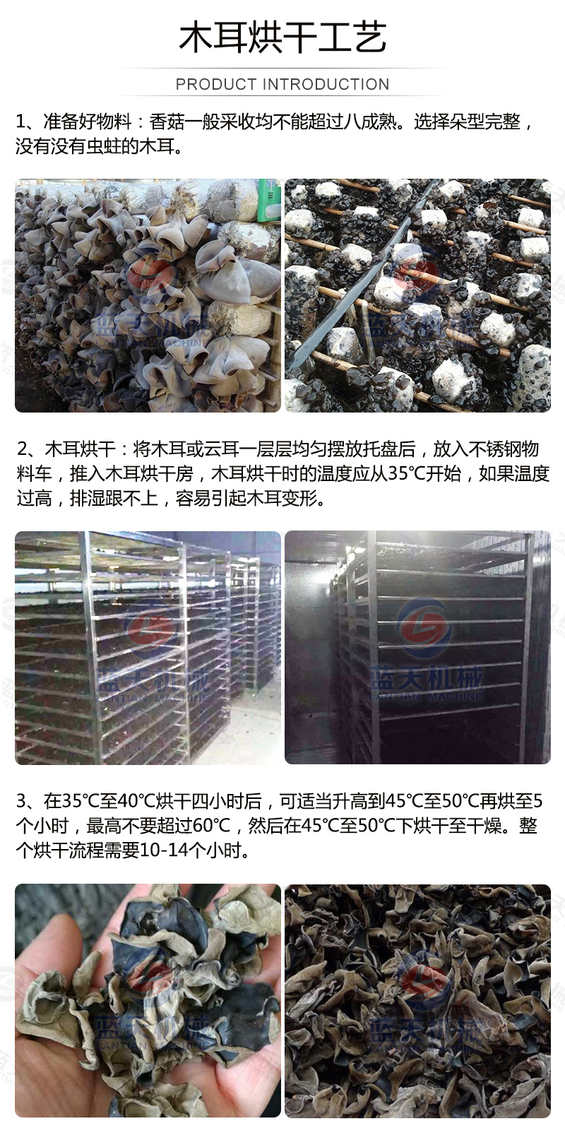 黑木耳采收后要及時(shí)晾曬或烘干,傳統的晾曬干制,遇到陰雨天氣會(huì )釋放大量孢子,導致黑木耳自溶、腐爛。因此,采用新型黑木耳烘干機烘干出來(lái)的黑木耳產(chǎn)品質(zhì)量是很重要的一個(gè)選擇。