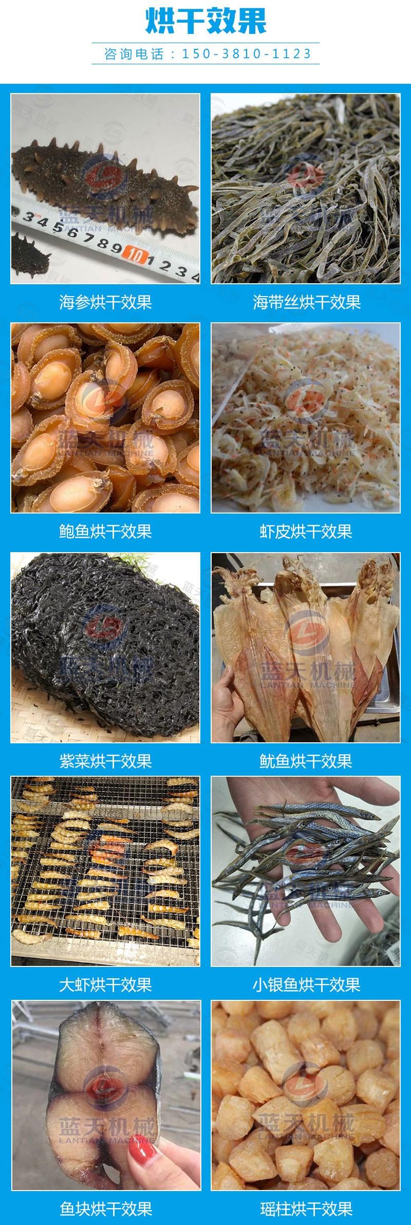 2、烘干的海產(chǎn)品成品色澤光鮮,味道鮮美;